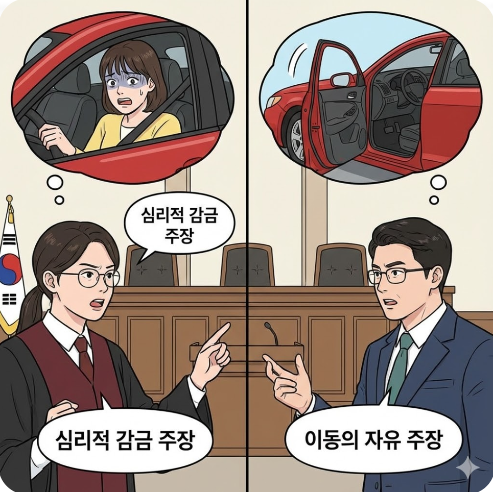 이 재판의 핵심 쟁점은 '피해자가 차량을 두고 걸어서 현장을 이탈할 수 있었음에도 불구하고 차 안에 머무른 것이 감금에 해당하느냐' 하는 것이었습니다.