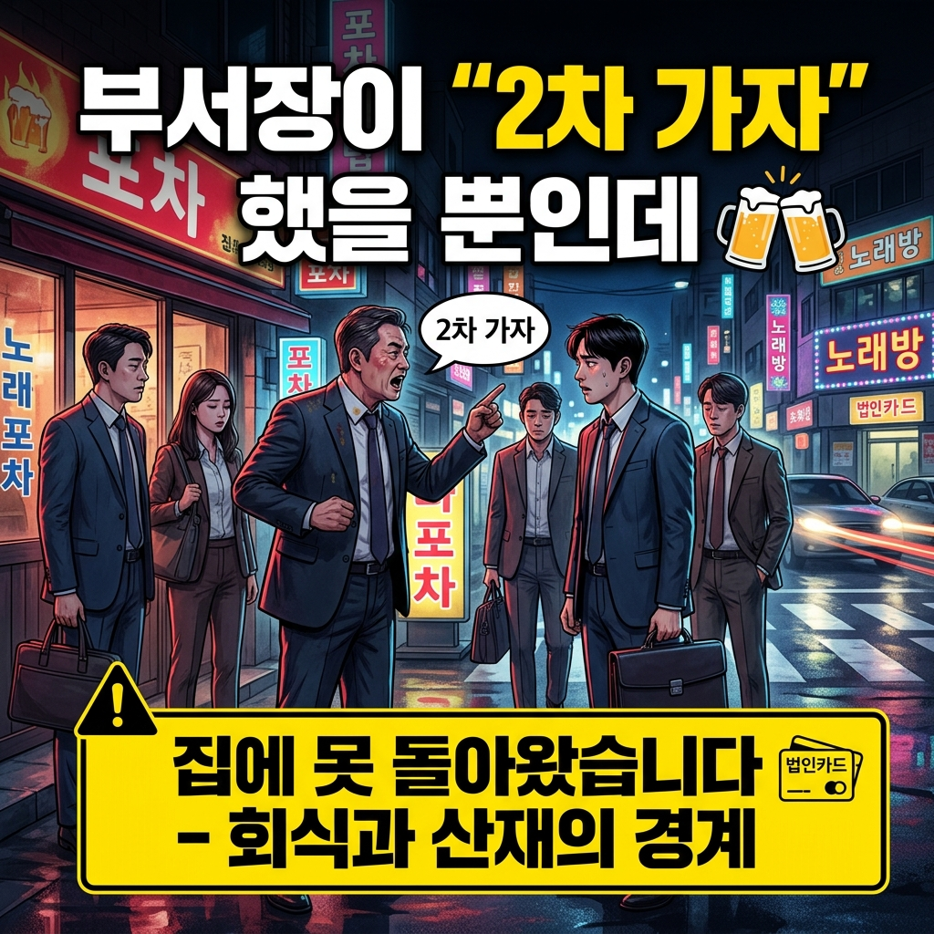 직장인이라면 한 번쯤 이런 경험이 있을 겁니다. 큰 행사를 마치고 팀장이 "오늘 한잔해야지" 하면, 그 말은 제안이 아니라 사실상 통보입니다. 1차가 끝나면 어김없이 "2차는 노래방이다"라는 선언이 따라옵니다. 법인카드가 꺼내지고, 부장님이 앞장서 걸어가는 길을 따라가지 않을 용기를 가진 사람은 드뭅니다.